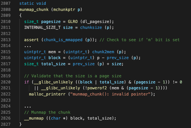 Figure 2 - Simplified Munmap Chunk GLibC 2.31
