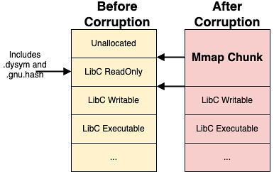 In this article, I wanted to shed more light on the exploitation method that was used by the Qualys researchers to ensure there is a well-documented location for this exploit method. In short, it is broken up into Munmaping part of LibC and to rewrite the symbol table to get code execution. There are two main perks of this technique: this bypasses ASLR entirely and works on mmap chunks in GLibC Malloc.